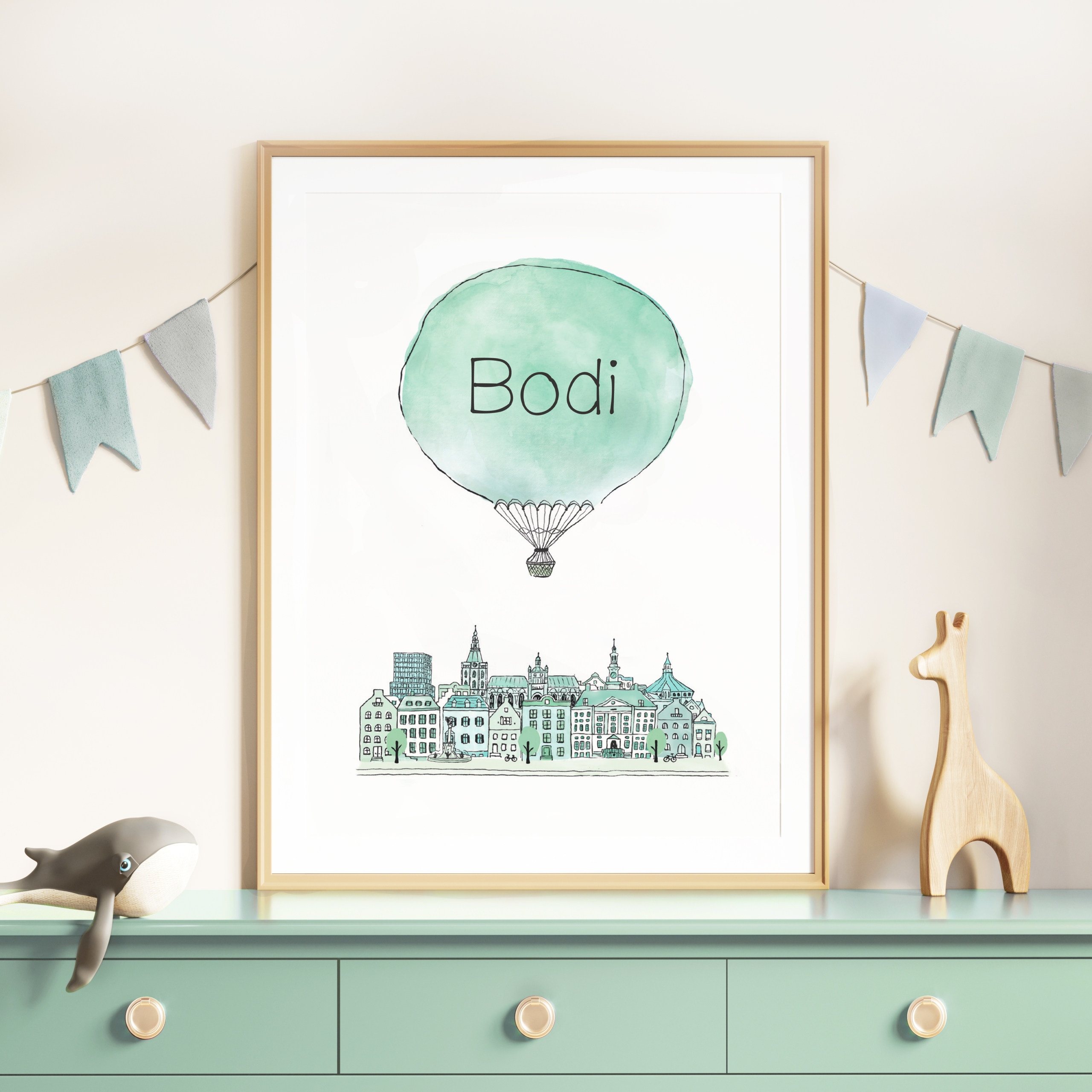 - Woon je niet in Den Bosch? We hebben in onze collectie ook geboortekaartjes met een ‘neutrale skyline’ en met de skyline van de steden: Amsterdam en Groningen. En ook de overige steden uit onze serie van skyline posters kunnen verwerkt worden in het kaartje. Zit jouw stad hier niet bij? Niet getreurd :). De illustratie van dit kaartje kan op maat worden gemaakt, met een illustratie van de stad waar jullie wonen. Stuur gerust een mailtje om te overleggen.