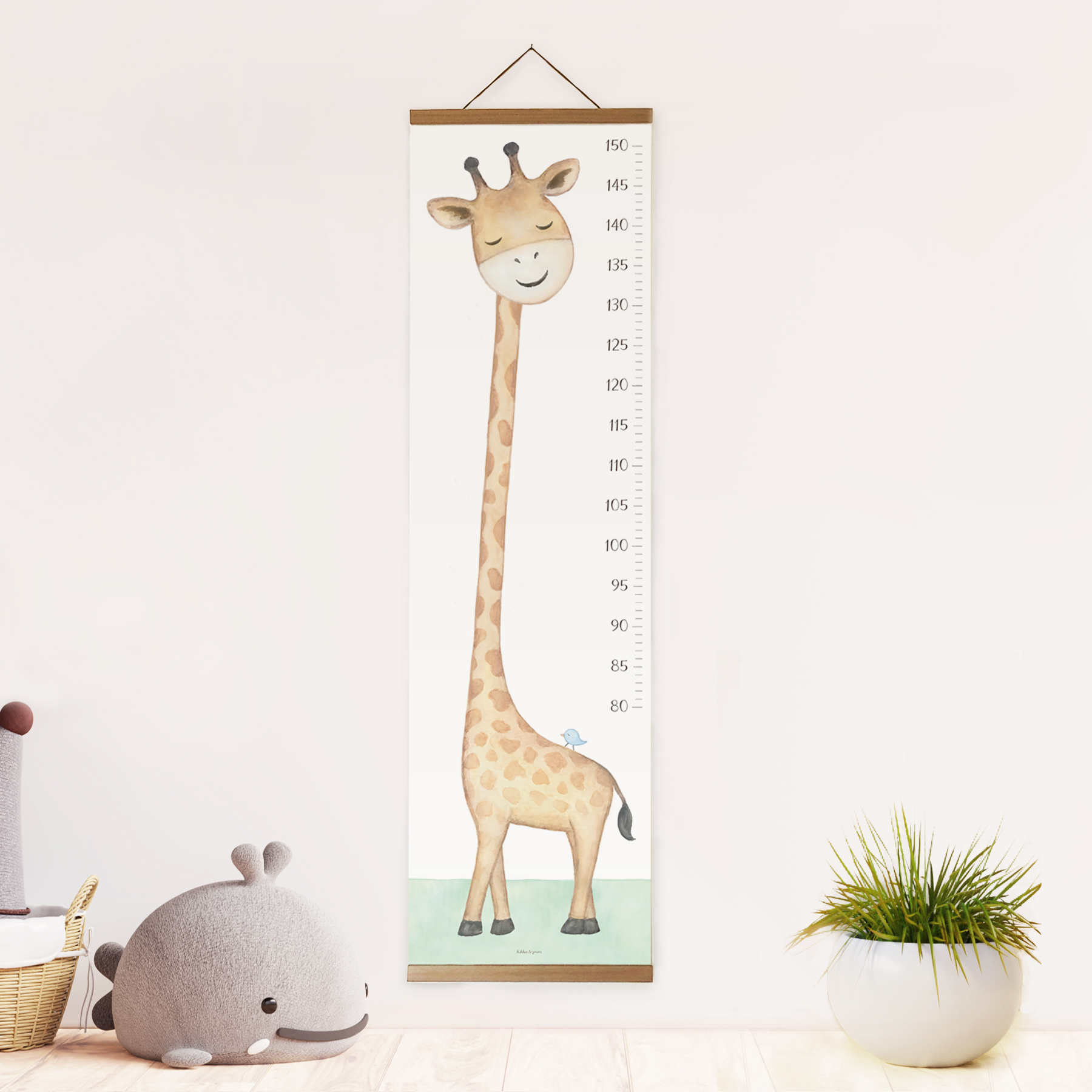 Groeimeter met afbeelding van een giraf in onze mooie aquarel stijl. Heel leuk voor de kinderkamer. De – door Kikker & Prins gemaakte – illustratie is gedrukt op canvasdoek en wordt geleverd met mooi houten ophangsysteem (met koortje en ingewerkte magneetjes).